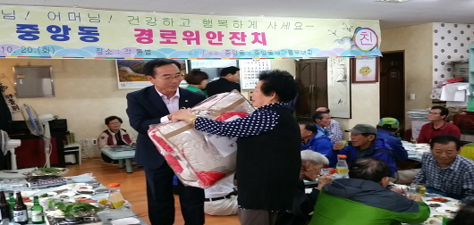 À̳¯ Çà»ç¿¡¼ ½Å¿µ½Ä Áß¾Óµ¿ÀåÀº ¿ÃÇØ 99¼¼ ¼Ä¥¿± ¾î¸£½Å µî Àå¼ö³ëÀÎ 6¸í¿¡°Ô ±â³äǰ(ÀÌºÒ 6ä)À» Àü´ÞÇß´Ù.
