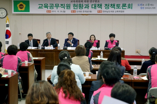À̳¯ Åä·Ðȸ´Â Àü³²µµÀÇȸ ±³À°À§¿øÈ¸°¡ °ø°øºÎ¹® ºñÁ¤±ÔÁ÷ Áß °¡Àå ¸¹Àº ºñÁ¤±ÔÁ÷ÀÌ ±Ù¹«Çϰí ÀÖ´Â Çб³ ±³À°°ø¹«Á÷¿ø¿¡ ´ëÇÑ ÇöȲÀ» Áø´ÜÇÏ°í ´Ù¾çÇÑ ´ë¾ÈÀ» ¸ð»öÇϱâ À§ÇØ ¸¶·ÃÇÑ ÀÚ¸®¿´´Ù.