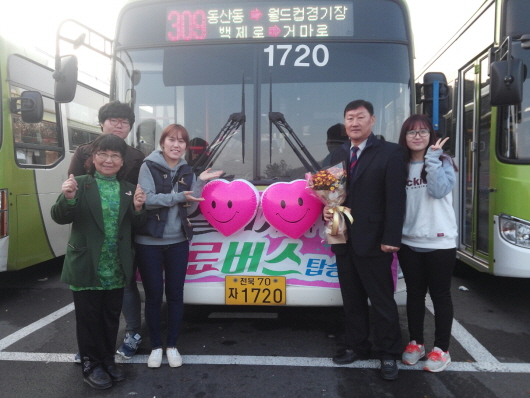 ¼ÛÁØ»ó ÀüÁֽà ´ëÁß±³Åë°úÀåÀº ¡°½Ã³»¹ö½º Ä£Àý±â»ç ¼±Á¤°ú ¹«·á¹ö½º ž½Âµ¥ÀÌ ¿î¿µÀ¸·Î ¿î¼öÁ¾»çÀÚµéÀÌ »ç±âÁøÀÛ ¹× ÀںνÉÀ» °¡Áú ¼ö ÀÖ´Â °è±â°¡ µÆ´Ù¸ç, ¾ÕÀ¸·Îµµ Ä£ÀýÇÏ°í ¾ÈÀüÇÑ ¹ö½º¿îÇàÀ¸·Î ½Ã³»¹ö½º ¼ºñ½º¸¦ °³¼±ÇÏ°í ¡®¹ö½ºÅ¸±â Áñ°Å¿î ÀüÁÖ¡¯¸¦ ¸¸µé¾î ³ª°¡´Âµ¥ ¸¸ÀüÀ» ±âÇϰڴ١± °í ¸»Çß´Ù.