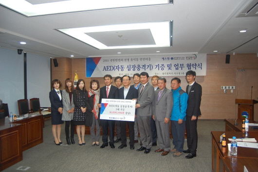 À̳¯ ±âÁõ½Ä¿¡´Â ±¤ÁÖ ¾ÈÀü»ýȰ½Çõ ½Ã¹Î¿¬ÇÕ Á¤È¯Àç ºÎ´ëÇ¥, ¢ß¿¡½º¿ø ±èÈï±Ô ¼±¤ÁÖÁö»çÀå, À¯´öµ¿ ¾ÈÀü¸¶À» ÇùÀÇü ±è°½Ä À§¿øÀå µî 10¸íÀÌ Âü¼®ÇÏ¿© ´öÈï ÇѸ¶À½ °æ·Î´ç°ú ¾çÈ °æ·Î´ç¿¡ ½ÉÀåÃæ°Ý±â¸¦ °¢°¢ 1´ë¾¿ ¼³Ä¡Çϰí ÀÀ±Þ »óȲ ½Ã ½ÉÀåÃæ°Ý±â°¡ ¿ÀÀÛµ¿ ÇÏ´Â °ÍÀ» ¹æÁöÇϱâ À§ÇÑ ÀÚµ¿½ÉÀåÃæ°Ý±â À¯Áö°ü¸® Çù¾à½ÄÀ» º´ÇàÇÏ¿© ½Ç½ÃÇÏ¿´´Ù.