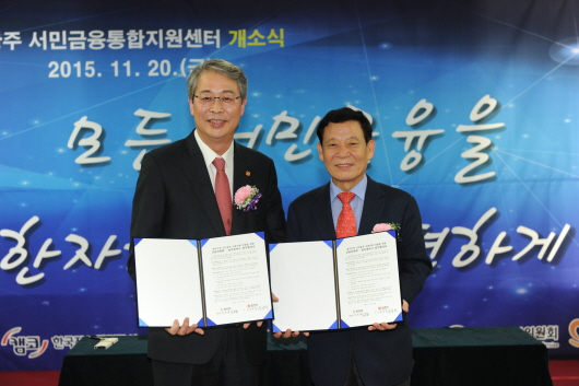 À̳¯ °³¼Ò½Ä¿¡ Âü¼®ÇÑ À±ÀåÇö ±¤ÁÖ±¤¿ª½ÃÀå°ú ÀÓÁ¾·æ ±ÝÀ¶À§¿øÈ¸ À§¿øÀåÀº ±¤ÁÖ½Ã¿Í ±ÝÀ¶À§¿øÈ¸ °£ ÅëÇÕÁö¿ø¼¾ÅÍÀÇ ¼º°øÀûÀÎ ¿î¿µ°ú ¼¹Î±ÝÀ¶ Áö¿ø Çù¾÷À» À§ÇÑ ¾÷¹«Çù¾àÀ» ü°áÇϰí, ¼¾ÅÍ »ó´ãⱸ¸¦ ã¾Æ Á÷¿øµéÀÇ ³ë°í¸¦ Ä¡ÇÏÇÏ¸ç ¼¹Î±ÝÀ¶ ½ÇÅ ¹× ¾Ö·Î»çÇ× µîÀ» ûÃëÇß´Ù.