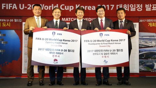 ´ëÇÑÃ౸Çùȸ´Â 24ÀÏ Á¤¸ù±Ô ´ëÇÑÃ౸Çùȸ ȸÀå°ú ±è½Â¼ö ÀüÁÖ½ÃÀå, ±è´ëÀº Àü¶óºÏµµÃ౸ÇùȸÀå, ¿°Å¿µ ¼ö¿ø½ÃÀå, À̼®Àç °æ±âµµÃ౸ÇùȸÀå µîÀÌ Âü¼®ÇÑ °¡¿îµ¥ °øµ¿ ±âÀÚȸ°ßÀ» °®°í, 2017 FIFA U-20¿ùµåÄÅ °³¸·ÀüÀ» 5¿ù 20ÀÏ ÀüÁÖ¿ùµåÄŰæ±âÀå¿¡¼ °³ÃÖÇϱâ·Î ÇÏ´Â µîÀÇ ´ëȸÀÏÁ¤À» °ø½Ä ¹ßÇ¥Çß´Ù.