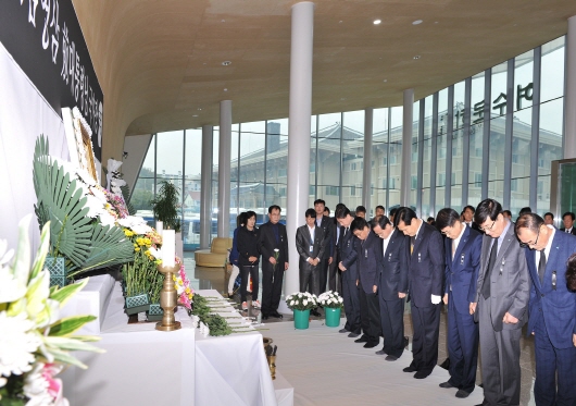 ÁÖöÇö ¿©¼ö½ÃÀåÀ» ºñ·ÔÇÑ ¿©¼ö½Ã °£ºÎ°ø¹«¿øµéÀº Áö³ 23ÀÏ ¿ÀÈÄ ¿©¼ö¹®ÈȦ 1Ãþ ºÐÇâ¼Ò¿¡¼ ÇÔ²² Á¶¹®ÇÏ¸ç ±è¿µ»ï Àü ´ëÅë·É¿¡ ´ëÇØ ¾Öµµ¸¦ Ç¥Çß´Ù.
