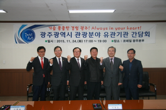 À̳¯ °£´ãȸ¿¡¼´Â ÄÚ·¹ÀÏ ±¤ÁÖº»ºÎÀå, ±¤ÁÖ±¤¿ª½Ã °ü±¤ÁøÈï°úÀå, ±¤ÁÖ¹®ÈÀç´Ü ´ëÇ¥ÀÌ»ç, ±¤ÁÖºñ¿£³¯·¹ ´ëÇ¥ÀÌ»ç, ±è´ëÁßÄÁº¥¼Ç¼¾ÅÍ»çÀå, ±¤ÁÖ°ü±¤ÄÁº¥¼Çºä·Î ´ëÇ¥ÀÌ»ç ¹× ±â°üº° ¸¶ÄÉÆÃ ´ã´çÀÚ µî 20¿©¸íÀÌ Âü¼®ÇÏ¿© ±¤ÁÖÁö¿ª °ü±¤È°¼ºÈ °øµ¿¸¶ÄÉÆÃ »ç¾÷ ÇöȲ °øÀ¯ ¹× ±¤ÁÖ±¤¿ª½Ã ÁÖ¿ä °ü±¤Çö¾È¿¡ ´ëÇÏ¿© °øÀ¯ÇÏ´Â ÀÚ¸®¸¦ °¡Á³´Ù.