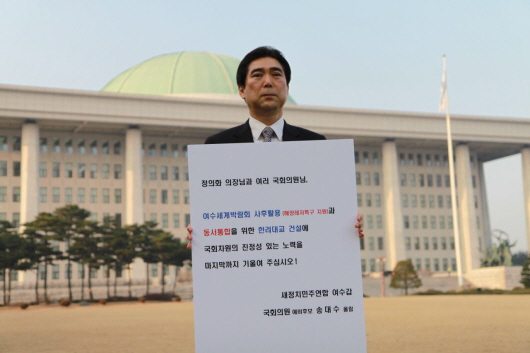 ¼Û´ë¼ö ¿¹ºñÈ帴 ÀÌ¿¡ ¾Õ¼ 21ÀÏ ¿ÀÈÄ Ã»¿Í´ë¿Í ±¹È¸¸¦ ã¾Æ ÇöÀç ¿©¼öÁö¿ªÀÇ Çö¾ÈÀ¸·Î °Å·ÐµÇ°í ÀÖ´Â ¹Ú¶÷ȸÀå »çÈÄȰ¿ë ¹®Á¦¿Í ÇÑ·Á´ë±³ °Ç¼³¹®Á¦¿¡ °üÇÏ¿© 1ÀÎ ½ÃÀ§¸¦ ÆîÄ¡¸ç ´ëÅë·É ¹× Á¤Ä¡±ÇÀÇ °ü½É°ú Áö¿øÀ» Á÷Á¢ ¿ä±¸ÇÏ°í ³ª¼± ¹Ù ÀÖ´Ù.