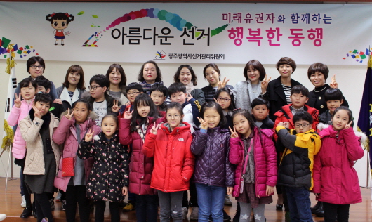 ±× ù ¹øÂ° µ¿ÇàÀÚ·Î ±¤ÁÖ ±¤»ê±¸ ¼ö¿ÏÃʵîÇб³ Çлý ¹× Çкθð 30¿©¸íÀ» ´ë»óÀ¸·Î ¼±°Å¿¡ °üÇÑ ´Ù¾çÇÑ ±³À°°ú üÇèÀ» ÅëÇØ ¾ÆÀ̵éÀÇ ´«³ôÀÌ¿¡¼ ¹Ì·¡À¯±ÇÀڷμÀÇ ¼±°Å¿¡ ´ëÇÑ ÀÌÇØÀÇ ÆøÀ» ³ÐÈ÷°í, Çкθð·Î ÇÏ¿©±Ý ¼±°Å¿¡ °üÇÑ ¿Ã¹Ù¸¥ ÀνÄÀ¸·Î ¾ÆÀ̵éÀÇ ¹Ù¸¥±³À°ÀÇ ±âȸ·Î »ï´Â ÇູÇÑ µ¿ÇàÀ» ÇÔ²² ÇßÀ¸¸ç, ±¤Áֽü±°üÀ§ ¹ÎÁֽùα³À° Àü¹®°¡·Î ±¸¼ºµÈ °»çÀÇ Âü¿© ¼ÒÅëÇü ±³À°À¸·Î ¹ÎÁֽùα³À° Àúº¯È®´ë¸¦ À§ÇØ 2016³â ¿¬Áß ½Ç½ÃµÈ´Ù.