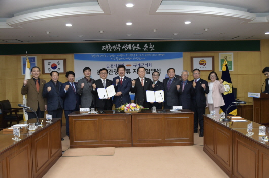 ƯÈ÷, ¼øÃµ½ÃÀÇȸ ±èº´±Ç ÀÇÀåÀº ¡°À̹ø Çù¾à½Ä¿¡¼ ±¹¸³°ø¿ø Á¦1È£ÀÎ Áö¸®»êÀ» º¸À¯ÇÑ ±¸·Ê±º°ú ±¹°¡Á¤¿ø Á¦1È£¸¦ °¡Áø ¼øÃµÀÌ »óÈ£°£ ÇàÁ¤±¸¿ªÀÇ °æ°è¸¦ ³Ñ¾î, °¢ Áö¿ª¿¡¼ º¸À¯ÇÑ ÃµÇýÀÇ °ü±¤ÀÚ¿øÀÇ Çù·ÂÀ» ÅëÇØ ¾ç ½Ã±ºÀÇ »ó»ý¹ßÀüÀ» ¾à¼ÓÇÏ´Â À̹ø Çù¾à½ÄÀº ÁöÀÚü °£ °æÀﱸµµº¸´Ù´Â ¹®È °ü±¤ ±³·ù¸¦ ÅëÇØ ÈÇÕ°ú °á¼ÓÀ» ´ÙÁø´Ù´Â Á¡¿¡¼ ¸Å¿ì ÀÇ¹Ì ÀÖ´Â ÀÏ¡±À̶ó°í ¹àÇû´Ù.