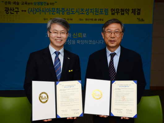À̳¯ ¿ÀÀü ±¤»ê±¸Ã»Àå½Ç¿¡¼ °¡Áø ¾÷¹«Çù¾à½Ä¿¡´Â ¹ÎÇü¹è ±¸Ã»Àå°ú ¼ÕÁ¤¿¬ ¾Æ½Ã¾ÆÁö¿øÆ÷·³ ȸÀå µî ¾ç ±â°ü °ü°èÀÚ 10¿© ¸íÀÌ Âü¼®ÇßÀ¸¸ç, Çù¾àÀº µÎ ±â°üÀÌ ¾Æ½Ã¾Æ¹®ÈÁ߽ɵµ½Ã Á¶¼º»ç¾÷ÀÇ È°¹ßÇÑ ÃßÁøÀ» À§ÇÑ »ç¾÷À» °øµ¿À¸·Î ÃßÁøÇÑ´Ù´Â ³»¿ëÀ» ´ã°í ÀÖÀ¸¸ç, ±¸Ã¼ÀûÀ¸·Î´Â ¾Æ½Ã¾Æ¹®ÈÁ߽ɵµ½Ã¿¡ °üÇÑ °¿¬È¸¸¦ ±¸¹Î¿¡°Ô Á¦°øÇϰí, ´Ù¾çÇÑ ¹®È¿¹¼úÇÁ·Î±×·¥µµ °øÀ¯Çϱâ·Î Çß´Ù.
