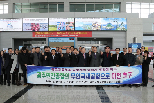 À§¿øÈ¸´Â ¼º¸í¼¸¦ ÅëÇØ ±¹Åä±³ÅëºÎ°¡ ±¤ÁÖ°øÇ×ÀÇ ¹«¾È±¹Á¦°øÇ×À¸·ÎÀÇ ÀÌÀüÅëÇÕÀ» 2006³âºÎÅÍ 3Â÷·Ê¿¡ °ÉÃÄ °øÇ×°³¹ß ÁßÀå±â°èȹ¿¡ Àü¶ó³²µµ¿Í ±¤Áֽà µÎ ±¤¿ªÀÚÄ¡´Üü°¡ ÇÕÀÇ ÃßÁøÅä·Ï ÇßÀ¸³ª, ¾ÆÁ÷±îÁö ÇÕÀǵµÃâÀº ¾ø°í °¥µî¸¸ °íÁ¶µÇ¾î ÀÌÁ¦´Â ±¹Åä±³ÅëºÎ°¡ ½Å°øÇ× °Ç¼³¿¡ ¾Õ¼ ¼±Á¦Àû Àû±ØÀûÀ¸·Î ³ª¼¾ß ÇÑ´Ù°í ÁöÀûÇß´Ù. ¶ÇÇÑ, Àü¶ó³²µµ¹ø¿µ¿¬ÇÕȸ´Â ±¤ÁÖ°øÇ×ÀÇ ¹«¾È±¹Á¦°øÇ×À¸·ÎÀÇ ÀÌÀüÅëÇÕÀº ¹«¾È±¹Á¦°øÇ×ÀÌ ¼³²±Ç °ÅÁ¡°øÇ×À¸·Î ±ÞºÎ»óÇÒ ¼ö ÀÖ´Â °è±â°¡ µÉ °ÍÀ̰í, È£³²¼± KTX 2´Ü°è ³ë¼±ÀÇ ¹«¾È±¹Á¦°øÇ× °æÀ¯´Â ÀüºÏ.ÃæÃ»±Ç µî Ÿ Áö¿ª ½Ãµµ¹ÎÀÌ °øÇ×À» ÀÌ¿ëÇÔ¿¡ µû¶ó Áö¿ª°æÁ¦ Ȱ¼ºÈ¿¡µµ Å©°Ô ±â¿©ÇØ ±¹Åä±ÕÇü¹ßÀüÀ» ¾Õ´ç±æ ¼ö ÀÖ´Ù°í ÁÖÀåÇß´Ù.