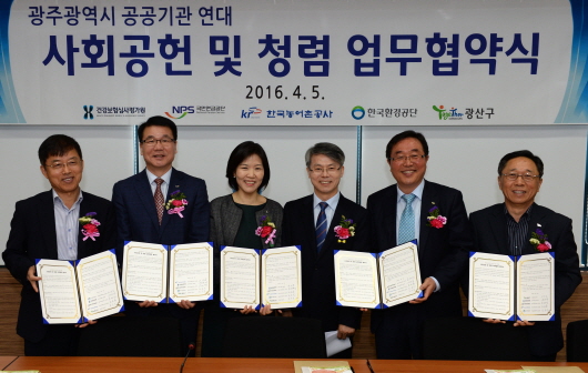 ±¤»ê±¸ ¿ì»êµ¿, °Ç°º¸Çè½É»çÆò°¡¿ø ±¤ÁÖÁö¿ø, ±¹¹Î¿¬±Ý°ü¸®°ø´Ü ±¤ÁÖÁö¿ªº»ºÎ, Çѱ¹³ó¾îÃ̰ø»ç Àü³²Áö¿ªº»ºÎ, Çѱ¹È¯°æ°ø´Ü È£³²±ÇÁö¿ªº»ºÎ´Â À̳¯ ¿ÀÀü 10½Ã 30ºÐ °ø°ø±â°ü û·ÅÀ±¸®°æ¿µ½ÇÇö ¹× Áö¿ª»çȸ ¹ßÀüÀ» À§ÇÑ ¾÷¹«Çù¾à½ÄÀ» °Ç°º¸Çè½É»çÆò°¡¿ø ±¤ÁÖÁö¿ø¿¡¼ °¡Á³´Ù.