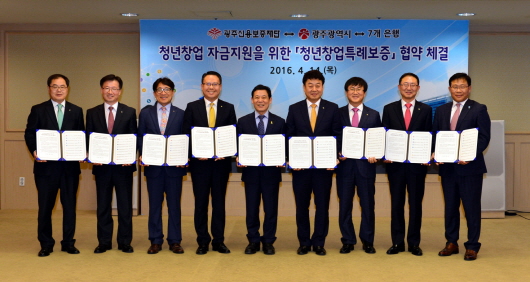 ±¤Áֽô 14ÀÏ ¿ÀÈÄ ½Ãû 3Ãþ ºñÁî´Ï½º·ë¿¡¼ ±¤Áֽſ뺸ÁõÀç´Ü, ±¤ÁÖÀºÇà, ½ÅÇÑÀºÇà, ¿ì¸®ÀºÇà, Áß¼Ò±â¾÷ÀºÇà, KB±¹¹ÎÀºÇà, KEBÇϳªÀºÇà, NH³óÇùÀºÇà µî°ú û³ââ¾÷ Ư·Êº¸ÁõÁ¦½ÃÇàÀ» À§ÇÑ Çù¾àÀ» ü°áÇß´Ù°í ¹àÇû´Ù, À̹ø Çù¾àÀº Âü½ÅÇÑ ¾ÆÀ̵ð¾î¿Í ±â¼ú·ÂÀ» °®°í ÀÖ¾î »ç¾÷¼ºÀÌ ÃæºÐÇÔ¿¡µµ ÀڱݷÂÀÌ Ãë¾àÇØ ¾î·Á¿òÀ» °Þ°í ÀÖ´Â Áö¿ª û³ââ¾÷°¡µéÀÇ Ã¢¾÷À» Àû±Ø Áö¿øÇϱâ À§ÇÑ °ÍÀÌ´Ù.