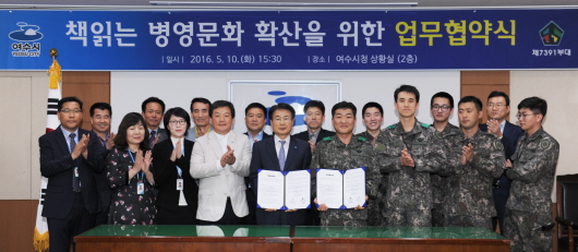 ¿©¼ö½Ã´Â 10ÀÏ ¿ÀÈÄ ½Ãû »óȲ½Ç¿¡¼ À̽¿Á ¿©¼ö½Ã ºÎ½ÃÀå°ú ¹ÚÁ¾ÇÊ Á¦7391ºÎ´ë ¿¬´ëÀå µî 20¿©¸íÀÌ Âü¼®ÇÑ °¡¿îµ¥ ±ººÎ´ë µ¶¼¹®È ÁøÀÛÀ» À§ÇÑ ¾÷¹«Çù¾àÀ» ü°áÇß´Ù, À̹ø Çù¾àÀ» ÅëÇØ ¿©¼ö½Ã¸³µµ¼°üÀº À庴µéÀ» ´ë»óÀ¸·Î Àι®ÇÐ °ÁÂ¿Í µ¶¼ÄÚĪ µî µ¶¼ÇÁ·Î±×·¥À» Á¦°øÇϰí, µÐ´ö1´ë´ë¿Í µ¹»ê µî¿¡ À§Ä¡ÇÑ ¼ÒÃÊ À庴µé¿¡°Ô À̵¿µµ¼°ü ¼øÈ¸¼ºñ½º µîÀ» ÅëÇØ µµ¼¸¦ ´ëÃâÇØ ÁØ´Ù.