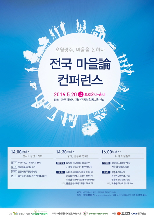 À̹ø ÄÁÆÛ·±½º´Â ¸¶À»¸¸µé±âÁö¹æÁ¤ºÎÇùÀÇȸ¿Í Çѱ¹¸¶À»Áö¿ø¼¾ÅÍÇùÀÇȸ °øµ¿ÁÖÃÖÇϸç, ÁÖÁ¦´Â ¸¶À»Ã¶Çаú ÇùÄ¡. ±¤»ê±¸´Â¡°Àü±¹ÀÇ ¸¶À»È°µ¿ »ç·Ê¿Í Á¤Ã¥À» °øÀ¯ÇÏ°í ¸¶À»ÀÇ °¡Ä¡¸¦ ÇÔ²² ³ª´®À¸·Î½á ¸¶À»¿îµ¿ÀÇ ¾Õ³¯À» ÀÀ¿øÇÏ°í ¸ð»öÇÏ´Â ¸¶À»¿îµ¿ °ø·ÐÀ塱À̶ó°í ¹àÇû´Ù.