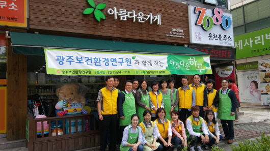 ±¤ÁÖ±¤¿ª½Ãº¸°Çȯ°æ¿¬±¸¿øÀº (Àç)¾Æ¸§´Ù¿î°¡°Ô ±¤ÁÖ¿îõÁ¡°ú °øµ¿À¸·Î 25ÀÏ ±¤ÁÖ¿îõÁ¡¿¡¼ ¼Ò¿Ü°èÃþÀ» Áö¿øÇϱâ À§ÇÑ ³ª´®ÀÇ ¾Æ¸§´Ù¿î µ¿Çà Çà»ç¸¦ ¿¾ú´Ù. À̳¯ Çà»ç´Â (Àç)¾Æ¸§´Ù¿î°¡°Ô ±¤ÁÖ¿îõÁ¡ÀÇ Á¦¾ÈÀ¸·Î ¸¶·ÃµÆÀ¸¸ç ½Ã º¸°Çȯ°æ¿¬±¸¿ø Àü Á÷¿øµéÀº ¾î·Á¿î ÀÌ¿ôÀ» Áö¿øÇÏ´Â ³ª´®¿¡ µ¿ÂüÇϱâ À§ÇØ Áö³ 2ÀϺÎÅÍ 20ÀϱîÁö °¡¹æ, ½Å¹ß ¸ðÀÚ, ±×¸©, ¼¤Çª, Ä¡¾à µî »ýȰ¿ëǰ 680¿© Á¡À» ¸ð¾Æ ¾Æ¸§´Ù¿î°¡°Ô¿¡ ±âÁõÇß´Ù.