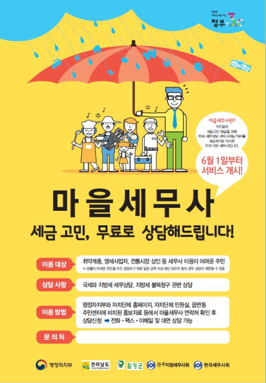 ¸¶À»¼¼¹«»ç¶õ ¼¼¹« »ó´ãÀ» ¹Þ±â ¾î·Á¿î Áֹε鿡°Ô Àç´É±âºÎ·Î »ó´ãÇÏ´Â Áö¿ª¼¼¹«»ç¸¦ ¸»ÇÏ´Â °¡¿îµ¥, ´ë»óÀº Ãë¾à°èÃþ°ú ¿µ¼¼»ç¾÷ÀÚ µîÀ̸ç, ÀüÈ, ÆÑ½º, À̸ÞÀÏ·Î ÇÒ ¼ö ÀÖÀ¸¸ç, ½Ã°£°ú Àå¼Ò¸¦ Á¤ÇØ Ãß°¡ »ó´ãµµ °¡´ÉÇÏ´Ù ´Ù¸¸, °¢Á¾ ½Å°í¼ ÀÛ¼º ´ëÇàÀ̳ª ½Å°í ´ëÇàÀº »ó´ã ¹üÀ§¿¡ Æ÷ÇÔµÇÁö ¾Ê´Â´Ù.