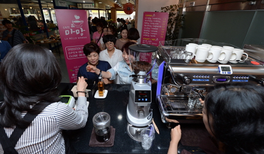 ¼ÛÁ¤1µ¿ ÁֹεéÀº Áö³´Þ 17ÀÏ °¡Áø ´õ ÁÁÀº ÀÚÄ¡°øµ¿Ã¼ ÁÖ¹ÎȸÀÇ¿¡¼ ºñÈ¥¸ðµéÀÇ µµÀüÀ» ÀÀ¿øÇϱâ À§ÇØ Áֹμ¾ÅÍ °ø°£ ÀϺθ¦ Ȱ¿ëÇÏÀÚ´Â °áÁ¤À» ³»·È´Ù. ¿©±â¿¡ º¹Áö½Ã¼³ ÆíÇÑÁýÀÌ »çȸº¹Áö°øµ¿¸ð±ÝȸÀÇ ÇØÇǸ¾ Áö¿ø»ç¾÷À» À̲ø¾î ³» ½Ã¼³À» ¸¶·ÃÇß´Ù.¼ÛÁ¤1µ¿Áֹμ¾ÅÍ 1Ãþ ·Îºñ¿¡ ¹®À» ¿¬ Ä«Æä ¸¶¸Á¿¡´Â ¹Ù¸®½ºÅ¸ ±³À°À» ¸¶Ä£ ºñÈ¥¸ð 3¸íÀÌ ±Ù¹«ÇÑ´Ù.