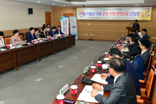 ±¤Áֽô 19ÀÏ ¿ÀÈÄ 2½Ã ½Ãû 3Ãþ ¼ÒȸÀǽǿ¡¼ ´ëÅë·É Á÷¼Ó ÀúÃâ»ê°í·É»çȸÀ§¿øÈ¸¿Í Áö¿ª ÀúÃâ»ê±Øº¹³×Æ®¿öÅ©°¡ ÇÔ²² ÇÏ´Â ¡®Áß¾Ó¡¤Áö¹æ ÇöÀå¼ÒÅë °£´ãȸ¡¯¸¦ °³ÃÖÇß´Ù. ¹®ÀÎ ÇàÁ¤ºÎ½ÃÀå ÁÖÀç·Î ¿¸° °£´ãȸ¿¡´Â 20¿© ¸íÀÇ Áö¿ª ³×Æ®¿öÅ© ´ëÇ¥°¡ Âü¼®ÇØ Áö¿ªÃâ»êÁ¤Ã¥ ÇöȲ ¹ßÇ¥, Åä·Ð, ´ëÁ¤ºÎ Ãâ»êÁ¤Ã¥ °ÇÀÇ, Èñ¸ÁÀå³°¨µµ¼°ü ¶ó¿îµù ¼øÀ¸·Î ÁøÇàµÆ´Ù.