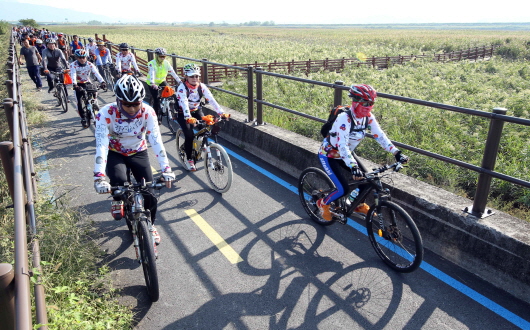 ÇÑÆí, °Áø±º °ÁøÀ¾ Æòµ¿¿¡¼ Ãâ¹ßÇÏ¿© ³²Æ÷±³¿Í Ãâ··´Ù¸®¸¦ ÀÕ´Â 16.1km ÇØ¾ÈÀÚÀü°Å±æÀÌ ÃÖ±Ù ¾Æ¸§´Ù¿î ÀÚÀü°Å±æ 100¼±¿¡ ¼±Á¤µÆ´Ù.