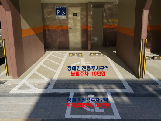 °Ç¹°ÁÖ¿¡°Ô Àå¾ÖÀÎÀü¿ëÁÖÂ÷±¸¿ª ¾È³»Ç¥½Ã ±Ô°ÝÀ» ÁؼöÇϵµ·Ï À¯µµÇϰí, Àü´ÜÁö 40,000ÀåÀ» ¹èºÎÇÏ¿© ÁýÁßÀûÀ¸·Î È«º¸¸¦ ½Ç½ÃÇÑ´Ù. ÁÖÂ÷¹æÇØÇàÀ§´Â Àå¾ÖÀÎÀü¿ëÁÖÂ÷±¸¿ª ³» ¹°°Ç µîÀ» ½×¾Æ µÎ°Å³ª, ÁÖÂ÷±¸¿ª ¾Õ¡¤µÚ ¹× ÁøÀԷο¡ ÁÖÂ÷ÇÏ´Â ÇàÀ§·Î Àû¹ß½Ã 50¸¸¿øÀÇ °úÅ·ᰡ ºÎ°úµÈ´Ù.Àå¾ÖÀÎÀü¿ëÁÖÂ÷±¸¿ª À§¹ÝÀº ÁÖÂ÷°¡´É Ç¥Áö¸¦ ºÙÀÌÁö ¾Æ´ÏÇÑ ÀÚµ¿Â÷¿Í ÁÖÂ÷°¡´É Ç¥Áö°¡ ºÙ¾î ÀÖ´Ù ÇÏ´õ¶óµµ º¸Çà»ó Àå¾ÖÀÎÀÌ ÀÖ´Â ÀÚ°¡ ž½ÂÇÏÁö ¾Æ´ÏÇÑ ÀÚµ¿Â÷·Î ´Ü¼ÓµÉ °æ¿ì 10¸¸¿øÀÇ °úÅ·ᰡ ºÎ°úµÈ´Ù.