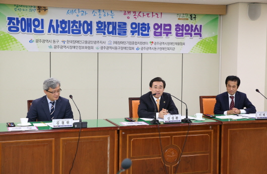 ÇÑÆí, ±è¼ºÈ¯ µ¿±¸Ã»ÀåÀº ¡°À̹ø Çù¾àÀÌ ¿ì¸®Áö¿ª Àå¾ÖÀεéÀÇ °æÁ¦Àû ÀÚ¸³À» µ½´Â ÁøÀϺ¸ÇÑ ³×Æ®¿öÅ© ±¸ÃàÀÇ Ãâ¹ßÁ¡ÀÌ µÇ±â¸¦ ±â´ëÇÑ´Ù¡±¸é¼ ¡°¾ÕÀ¸·Îµµ Àå¾ÖÀεéÀÇ ±ÇÀÍÇâ»ó°ú º¹ÁöÁõÁøÀ» À§ÇØ ´õ¿í ³ë·ÂÇϰڴ١±°í ¸»Çß´Ù.