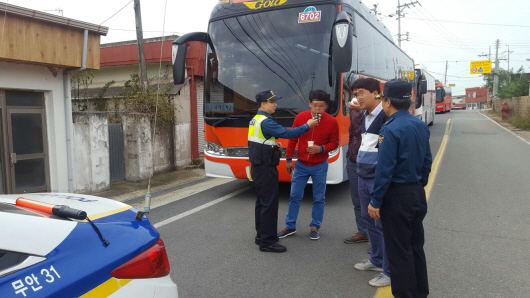 ¹«¾È°æÂû¼ ÇØÁ¦ÆÄÃâ¼Ò¿¡¼´Â 10¿ù 18ÀÏ À½ÁÖ¿îÀü ¿¹¹æ ¹× ´ëÇü±³Åë»ç°í ¿¹¹æÀ» À§ÇØ ÇØÁ¦ÁßÇб³¿¡¼ õ¾ÈÀ¸·Î ÇöÀåüÇè ÇнÀ¹ö½º4´ë(101¸í)¿¡ ´ëÇÑ À½ÁÖ°¨Áö ¹× Àü Á¼® ¾ÈÀü¶ì Âø¿ë µî ±³Åë¾ÈÀü ±³À°À» ½Ç½ÃÇÏ¿´´Ù