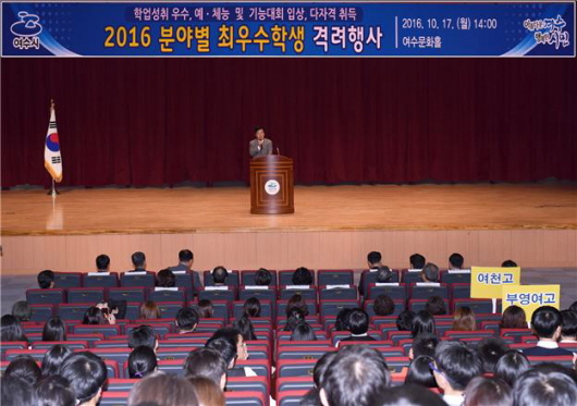 ÁÖöÇö ¿©¼ö½ÃÀåÀº ¡°Áö¿ªÀÇ ¹Ì·¡´Â ±³À°¿¡ ÀÖÀ¸¸ç ÁÁÀº ÀÎÀ縦 Ű¿ö³»´Â °Í¸¸Å º¸¶÷µÇ°í °ªÁø ÅõÀÚ´Â ¾ø´Ù°í »ý°¢ÇؿԴ١±¸ç ¡°½Ã¿¡¼´Â ÇлýµéÀÌ Áö¿ª ³»¿¡¼ ¿½ÉÈ÷ °øºÎÇÏ°í °¢ÀÚÀÇ ¼ÒÁú°ú Àç´ÉÀ» ¸¶À½²¯ ÆîÄ¥ ¼ö ÀÖµµ·Ï ±³À°È¯°æ °³¼±¿¡ ÃÖ¼±ÀÇ ³ë·ÂÀ» ´ÙÇϰí ÀÖ´Ù¡±°í ¸»Çß´Ù.ÀÌ¾î ¡°¿À´Ã ÃÖ¿ì¼öÇлý¿¡ »ÌÈù ¿©·¯ºÐÀÌ ¿©¼ö½Ã¹ÎÀ̶ó´Â ±àÁö¿Í ÀںνÉÀ¸·Î ¿½ÉÈ÷ ³ë·ÂÇØ Áö¿ªÀ» ³Ñ¾î ´ëÇѹα¹À» ºû³¾ ÀÎÀç·Î Ä¿ Áֱ⠹ٶõ´Ù¡±°í ´çºÎÇß´Ù.