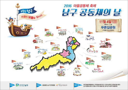 28ÀÏ ³²±¸¿¡ µû¸£¸é 2016 ³²±¸ °øµ¿Ã¼ÀÇ ³¯ Çà»ç´Â ¿À´Â 11¿ù 4ÀÏ ¿ÀÀü 10½ÃºÎÅÍ ÁÖ¿ùµ¿ Ǫ¸¥±æ°ø¿ø ºò½ºÆ÷ ±¤Àå ÀÏ¿ø¿¡¼ ¿¸°´Ù. À̳¯ Çà»ç¿¡´Â °ü³» 16°³µ¿¿¡¼ Ȱµ¿ ÁßÀÎ ¸¶À»È°µ¿°¡¸¦ ºñ·ÔÇØ ÁÖ¹Î, ±¤ÁÖ¸¶À»ºÐÀïÇØ°á¼¾ÅÍ ¹× Áö¿ªÃ¢¾ÈÁ¦·Î Ȱµ¿ÇÏ´Â 84°³ ÆÀ µî 1,200¸í °¡·®ÀÌ Âü¼®ÇÒ ¿¹Á¤ÀÌ´Ù.