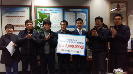 ÀüÁÖû³â¸®´õ»ç¾÷´Ü(ȸÀå ÇѸí¿Á)Àº 9ÀÏ ÀüÁֽà º¹Áöȯ°æ±¹Àå½Ç¿¡¼ »ý°è¸¦ À§ÇØ ÆóÁö¸¦ ¼ö°ÅÇÏ´Â ¾î¸£½ÅµéÀ» µ½±â À§ÇÑ ÈÄ¿ø±Ý 200¸¸¿øÀ» ÀüÁֽÿ¡ ±âŹÇß´Ù. ÀüÁÖû³â¸®´õ»ç¾÷´ÜÀº ÀüÁֽà û¼Ò³âµé¿¡°Ô Ãë¾÷Á¤º¸¸¦ Á¦°øÇϰí û¼Ò³âÀÚ¸³Áö¿ø µî Áö¿ª»çȸ ¹ßÀüÀ» À§ÇØ ÀüÁֽà û³â»ç¾÷°¡µé·Î ±¸¼ºµÆÀ¸¸ç, Áö³ 2015³âºÎÅÍ È°µ¿À» ½ÃÀÛÇØ ÇöÀç 100¿©¸íÀÇ È¸¿øÀÌ È°µ¿Çϰí ÀÖ´Ù.