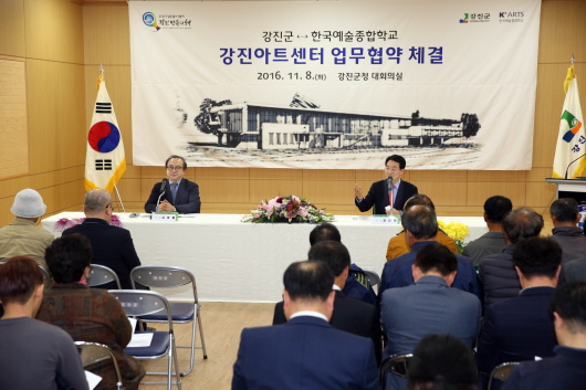 °Áø±º°ú Çѱ¹¿¹¼úÁ¾ÇÕÇб³(ÃÑÀå ±èºÀ·Ä, ÀÌÇÏ ÇÑ¿¹Á¾)´Â Áö³ 8ÀÏ ¿ÀÈÄ °Áø±ºÃ» ´ëȸÀǽǿ¡¼ Áö¿ª¹®È¿¹¼ú âÀÛ ¹× Àü¹®Àη ¾ç¼º±â°üÀ¸·Î »õ·Î ¹®À» ¿©´Â¡®Çѱ¹¿¹¼úÁ¾ÇÕÇб³ °Áø¾ÆÆ®¼¾ÅÍ(±¸, °Áøµµ¿¹Çб³)¡¯ÀÇ ¼º°øÀû ¿î¿µÀ» À§ÇÑ ¾÷¹«Çù¾àÀ» ü°áÇß´Ù. À̹ø Çù¾àÀº °Áø±º ´ë±¸¸é¿¡ ÀÖ´Â ¿¾ °Áøµµ¿¹Çб³¸¦ Áö¿ª Ư¼ºÀ» »ì¸° ¹®È¿¹¼ú âÀÛº¸±Þ °ø°£À¸·Î Ȱ¿ëÇϰíÀÚ ÇÑ °Áø±ºÀÇ Á¦¾È°ú ¿ì¼öÇÑ ¹®È¿¹¼ú ¿ª·®À» Áö¿ª»çȸ¿¡ ȯ¿øÇÏ·Á´Â ÇÑ¿¹Á¾ °£ÀÇ ³ë·ÂÀÌ ÀÌ·ç¾î³½ °á½ÇÀÌ´Ù.