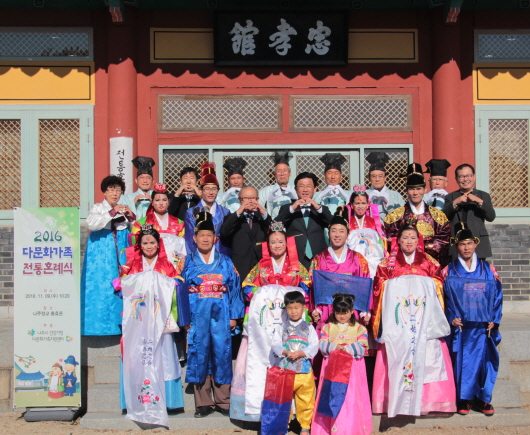 ³ªÁֽô ³ªÁֽðǰ°¡Á¤‧´Ù¹®È°¡Á·Áö¿ø¼¾ÅÍ(¼¾ÅÍÀå ÇϾçÁø) ÁÖ°üÀ¸·Î 9ÀÏ ¿ÀÀü ³ªÁÖÇâ±³ ÃæÈ¿°ü¿¡¼ ³ª¸ð¾¾(57. ¹®Æò¸é)¸¦ ºñ·ÔÇÑ 5½ÖÀÇ ´Ù¹®È°¡Á· ºÎºÎµéÀ» À§ÇÑ ÀüÅëÈ¥·Ê½ÄÀ» ¸¶·ÃÇß´Ù. ´Ù¹®È°¡Á¤ ÀüÅëÈ¥·Ê´Â °áÈ¥ÀÌÁÖ¿©¼ºµéÀÇ Çѱ¹ È¥·Ê¿¡ ´ëÇÑ Àνİú ¹®È¿¡ ´ëÇÑ ÀÌÇØ¸¦ ³ôÀ̰í, ´Ù¹®È°¡Á¤ÀÇ ¾ÈÁ¤ÀûÀÎ °áÈ¥»ýȰÀ» µ½±â À§ÇØ Ã³À½À¸·Î ¸¶·ÃÇß´Ù.