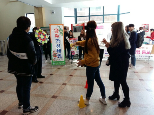 À̳¯ Ä·ÆäÀο¡´Â ÃÊ´ç´ëÇб³ Çлý°ú ¹«¾È±³À°Áö¿øÃ», º¸°Ç °ü°èÀÚ µî 100¿©¸íÀÌ Âü¿©ÇØ À½ÁÖÆóÇØÀÇ ½É°¢¼ºÀ» ¾Ë¸®°í, À½ÁÖ¿¡ ´ëÇÑ Áö¿ªÁÖ¹ÎÀÇ ÀνÄÀ» °³¼±Çϱâ À§ÇØ ¡®¼úÀÜÀ» °¡º±°Ô, ±Í°¡´Â ºü¸£°Ô, À½ÁÖµµ ½º¸¶Æ® ½Ã´ë¡¯¶ó´Â ½½·Î°ÇÀ¸·Î °Å¸® ÇàÁøÀ» ¹ú¿´´Ù. ¶ÇÇÑ ±ºÀº ÃÊ´ç´ëÇб³ ÀýÁÖ µ¿¾Æ¸®¿Í ¿¬°èÇÏ¿© °³ÀÎÀÇ À½ÁÖ À¯ÇüÀ» ¾Ë¾Æº¼ ¼ö Àִ ü³» ¾ËÄÚ¿Ã À¯ÀüÀÚ Å×½ºÆ®¿Í À½ÁÖ ¼±º°°Ë»ç¸¦ ºñ·ÔÇØ °í±Û․´ÙÆ®¸¦ ÀÌ¿ëÇÑ °¡»óÀ½ÁÖüÇè, À½ÁÖ»ó½Ä ÄûÁî, ÀýÁÖ ¼¸í µî ´Ù¾çÇÏ°Ô È«º¸°üÀ» ¿î¿µÇÔÀ¸·Î½á °úÀ½ÀÇ À§Ç輺À» Á÷Á¢ üÇèÇÏ°í ¿Ã¹Ù¸¥ À½ÁÖ½À°üÀ» Çü¼ºÇÒ ¼ö ÀÖ´Â °è±â¸¦ ¸¶·ÃÇØ ÁÖ¾ú´Ù.