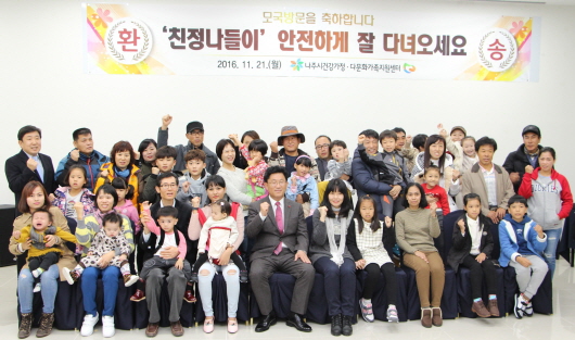 ³ªÁֽà °Ç°°¡Á¤?´Ù¹®È°¡Á·Áö¿ø¼¾ÅÍ ÁÖ°üÀ¸·Î ¼±Á¤µÈ À̵éÀº °íÇâÃâ¹ß¿¡ ¾Õ¼ 21ÀÏ ¿ÀÀü ¼Û¿ùµ¿ ¿¥½ºÅ×ÀÌÈ£ÅÚ¿¡¼ ¿¸° ȯ¼ÛÇà»ç¿¡¼ °¡Á· ¾Ù¹üÀ» ¸¸µé°í, ¸ð±¹¿¡¼ ±â´Ù¸®°í ÀÖ´Â °¡Á·µé¿¡°Ô ¹æ¹® °¡Á·µéÀÇ ¼Ò°¨À» ¿µ»óÀ¸·Î ³ª´©¸ç °íÇâ¹æ¹®¿¡ ´ëÇÑ ¼³·½°ú ±â´ë¸¦ Ç¥ÇöÇß´Ù.