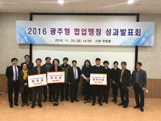 ±¤Áֽô 25ÀÏ ½Ãû 2Ãþ ¹«µîȦ¿¡¼ Çù¾÷ÇàÁ¤ÀÇ ¼º°ú¸¦ °øÀ¯․È®»êÇϱâ À§ÇØ 2016 ±¤ÁÖÇü Çù¾÷ÇàÁ¤ ¼º°ú¹ßǥȸ¸¦ °³ÃÖÇß´Ù. À̹ø ¹ßǥȸ´Â ¿Ã ÇÑÇØ ½Ã°¡ ÃßÁøÇÑ Çù¾÷¼º°ú¸¦ °á»êÇÏ´Â ÀÚ¸®·Î, À½½Ä¹° ¾²·¹±â 30% ÁÙÀ̱⸦ ºñ·ÔÇØ ¸¶À»Á¤Ã¥ Ç÷§Æû, ¹®ÈÀü´ç ÁÖº¯ Ȱ¼ºÈ »ç¾÷ µî Áö³ 2¿ù °ø¸ð¸¦ ÅëÇØ ¼±¹ßµÈ ±¤ÁÖÇü Çù¾÷ ½Ã¹ü°úÁ¦ 11°³ Áß 9°³ ÆÀÀÌ Âü°¡ÇØ °æÇÕÀ» ¹ú¿´´Ù. ½É»ç´Â Àü¹®°¡·Î ±¸¼ºµÈ 8¸íÀÇ Àü¹®½É»ç´Ü°ú ½Ã¹Î, °ø¹«¿ø 83¸íÀÌ Âü¿©ÇÑ Ã»Á߽ɻç´ÜÀÌ ¸Ã¾ÒÀ¸¸ç, »çÀü½É»ç¿Í À̳¯ ÇöÀå½É»ç °á°ú¸¦ ÇÕ»êÇØ °íµæÁ¡ ¼øÀ¸·Î ¼øÀ§¸¦ °áÁ¤Çß´Ù.
