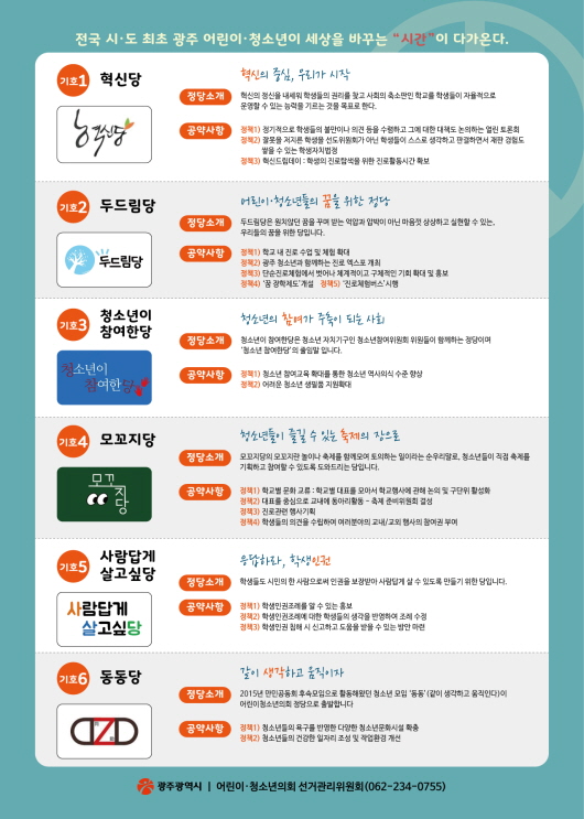 ³» »ý¾Ö ùÅõÇ¥ 1Â÷ »çÀüÅõÇ¥°¡ ±¤ÁÖû¼Ò³âµ¶¸³Æä½ºÆ¼¹ú(±Ý³²·Î Â÷¾ø´Â°Å¸®) ÇöÀåÀ» ½ÃÀÛÀ¸·Î º»°ÝÀûÀÎ ¾î¸°ÀÌ¡¤Ã»¼Ò³âÀÇȸ ¼±°Å°¡ Ä¡·¯Á³´Ù. ÅõÇ¥¹æ¹ýÀº ÇöÀåÅõÇ¥¿Í ¿Â¶óÀÎÅõÇ¥ Áß 1ÀÎ 1ȸ ¼±ÅÃÅõÇ¥ ¹æ½ÄÀÌ´Ù. 11¿ù7ÀϺÎÅÍ 27ÀϱîÁö 3ÁÖ°£ ½Ç½ÃµÈ ÃѼ±°Å¿¡¼ 14°³ Çб³°¡ ±³³»ÅõÇ¥¸¦ ½Ç½ÃÇϰí, 5°³ û¼Ò³â¼ö·Ã°ü°ú û¼Ò³âÀÌ ¸¹ÀÌ ¸ðÀÌ´Â ±¤ÀåÀ̳ª °ø°øÀå¼Ò¿¡¼ °ÅÁ¡ ÇöÀåÅõÇ¥°¡ ½Ç½ÃµÆ´Ù.