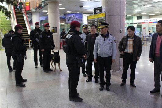 ±¤ÁÖ°æÂû¿¡¼´Â °æÂûƯ°ø´ë µî ´ëÅ×·¯․ÀÛÀüºÎ´ë ºñ»óÃ⵿ż¼ À¯Áö ¹× ´ÙÁßÀÌ¿ë½Ã¼³ µî¿¡ ´ëÇÏ¿© 1ÀÏ 2ȸÀÌ»ó ¿¬°è¼øÂûÀ» ½Ç½ÃÇÏ¿© ¸é¹ÐÇÑ Á¡°ËÀ» ½Ç½ÃÇϰí ÀÖ´Ù. ¶ÇÇÑ ±¤ÁÖ°øÇ×, ¼ÛÁ¤KTX¿ª µî ÁÖ¿ä½Ã¼³¿¡ ´ëÇØ °æÂûƯ°ø´ë¸¦ ¹èÄ¡ ¾ÈÀü°ËÃø ¹× À§·Â¼øÂû Ȱµ¿ µî ´ëÅ×·¯ ¾ÈÀüȰµ¿À» ÆîÄ¡°í ÀÖ´Ù.
