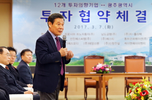 À±ÀåÇö ±¤ÁÖ½ÃÀåÀº ¡°¼¼°è °æÁ¦°¡ ¿äµ¿Ä¡´Â ¾öȤÇÑ »óȲ¿¡¼ ¿©·¯ºÐµéÀÇ ÅõÀÚ´Â °í³ú¿¡ Âù °á´ÜÀ̾úÀ» °ÍÀÌ´Ù¡±¸ç ¡°±¤Áֽô ÅõÀÚ ±â¾÷µéÀÌ ±¤ÁÖ¿¡ ¿¬Âø·úÇÏ°í ¸ÅÃâÀ» Áõ´ëÇÒ ¼ö ÀÖµµ·Ï ÃÖ¼±À» ´ÙÇØ Áö¿øÇϰڴ١±°í ¸»Çß´Ù.