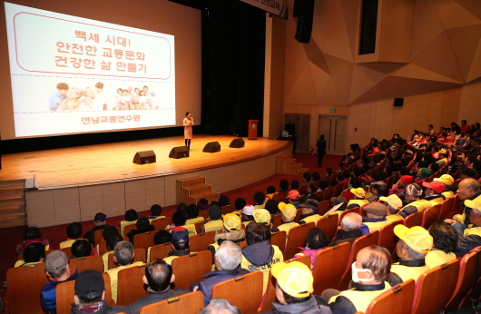 ÀÌ¿ÍÇÔ²² ¡®¹é¼¼½Ã´ë ¾ÈÀüÇÑ ±³Åë¹®È °Ç°ÇÑ »î ¸¸µé±â¡¯¸¦ ÁÖÁ¦·Î Àü³²±³Å뿬¼ö¿ø ±â¹ÌÇö °»ç°¡ ±³À°À» ÁøÇàÇØ ¾ÈÀüÇÑ ³ëÀÎÀÏÀÚ¸® »ç¾÷ Âü¿© ¾î¸£½Åµé°ú °ø°¨ÀÇ ½Ã°£À» °¡Á³´Ù. ³ëÀÎÀÏÀÚ¸®»ç¾÷ °¡¿îµ¥ ±³ÅëÁöÅ´ÀÌ »ç¾÷¿¡ Âü¿©ÇÏ´Â °í±Ý¿Á¾¾´Â ¡°»çȸȰµ¿µµ ÇÏ°í ¿ëµ·µµ ¹ú¼ö ÀÖ¾î ÁÁ´Ù¡±¸é¼ ¡°2017 °Áø ¹æ¹®ÀÇ ÇØ¸¦ ¸Â¾Æ ±º¹ÎÀÇ ÇÑ »ç¶÷À¸·Î¼ µµ¿òÀÌ µÉ ¼ö ÀÖ¾î »ÑµíÇÏ´Ù¡±¶ó°í ¸»Çß´Ù.