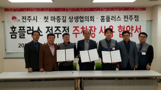 ÀüÁֽô Ãֱ٠ȨÇ÷¯½º ÀüÁÖÁ¡¿¡¼ ³ëÄ¡È Ã¹ ¸¶Áß±æ »ó»ýÇùÀÇȸÀå°ú ÀºÀç»ó ȨÇ÷¯½º ÀüÁÖÁ¡Àå, ÀüÁֽà °ü°èÀÚ µîÀÌ Âü¼®ÇÑ °¡¿îµ¥ ¡®È¨Ç÷¯½º ÀüÁÖÁ¡ ÁÖÂ÷Àå »ç¿ë Çù¾à¡¯À» ü°áÇϰí, »óÈ£ ½Å·Ú¿Í Á¸ÁßÀ» ¹ÙÅÁÀ¸·Î ù ¸¶Áß±æ Á¶¼º»ç¾÷¿¡ µû¸¥ ÁÖÂ÷³À» ÇØ°áÇϱâ À§ÇØ ÈûÀ» ¸ðÀ¸±â·Î Çß´Ù.