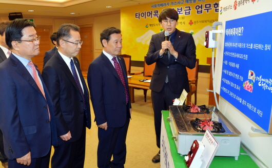 ÀÌ·± ±¤ÁÖ½ÃÀÇ ³ë·Â¿¡ ÈûÀ» º¸Å±â À§ÇØ ÇØ¾çµµ½Ã°¡½º¿Í »çȸº¹Áö°øµ¿¸ð±Ýȸ°¡ ÇÔ²² ³ª¼ À̹ø Çù¾àÀ» ü°áÇÏ°Ô µÈ °ÍÀÌ´Ù. À̳¯ ÇØ¾çµµ½Ã°¡½º´Â Çù¾àü°á¿¡ ¾Õ¼, Á¤ÇØÁø ½Ã°£ÀÌ µÇÀÚ °¡½º¸¦ ÀÚµ¿À¸·Î Â÷´ÜÇϴ ŸÀ̸ÓÄÛ ÀÛµ¿ ½Ã¿¬À» ÅëÇØ Âü¼®Àڵ鿡°Ô ¡®¿Ö ŸÀ̸ÓÄÛÀÌ ÇÊ¿äÇѰ¡¡¯¸¦ ¼³¸íÇÏ´Â ½Ã°£À» °¡Á³´Ù.