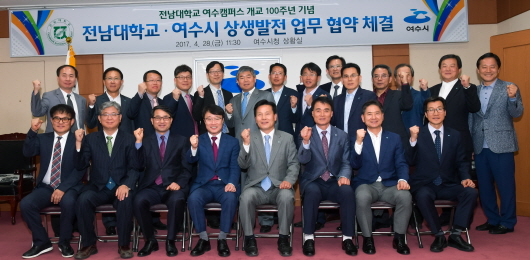 ÁÖöÇö ¿©¼ö½ÃÀå°ú Á¤º´¼® Àü³²´ëÇб³ ÃÑÀåÀº Áö³ 28ÀÏ ½Ãû »óȲ½Ç¿¡¼ ¿¸° Çù¾à½Ä¿¡¼ Ȱ¹ßÇÑ ±³·ù¿Í Çù·ÂÀ» ÅëÇØ Áö¿ª»çȸÀÇ ¹ßÀüÀ» µµ¸ðÇϰí Àü³²´ë ¿©¼öÄ·ÆÛ½ºÀÇ »õ·Î¿î 100³âÀ» ÇÔ²² ÁغñÇÏÀÚ°í ¾à¼ÓÇß´Ù.