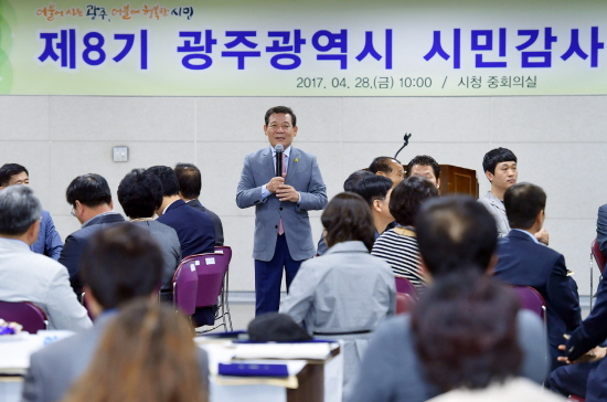 Á¦8±â ½Ã¹Î°¨»ç°üÀº 2019³â 4¿ù±îÁö 2³â°£ ¹«º¸¼ö ¸í¿¹Á÷À¸·Î ÀÚÄ¡±¸¿Í °ø»ç․°ø´Ü¿¡ ´ëÇÑ Á¾ÇÕ°¨»ç¸¦ Âü¿©Çϰųª À§¹ý․ºÎ´çÇÑ ÇàÁ¤»çÇ×, ½Ã¹ÎºÒÆí․ºÒ¸¸Á· »çÇ× µîÀ» Á¦º¸ÇØ °³¼±Åä·Ï ÇÏ´Â ¿ªÇÒÀ» ¸Ã´Â´Ù. ±¤ÁÖ±¤¿ª½Ã´Â Áö³ 3¿ù ½Ã¹Î°¨»ç°üÀ» °ø¸ð, 5°³ ÀÚÄ¡±¸¿Í ¼ºº° ±ÕÇüÀ» ÃÖ¿ì¼±ÀûÀ¸·Î °í·ÁÇÏ°í °Ç¼³, ¹®È, º¸°Ç, º¹Áö, ȯ°æ ºÐ¾ß µî Àü¹®°¡¸¦ ¾È¹èÇØ 100¸íÀ» ¼±Á¤Çß´Ù.