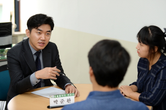 ±¤»ê±¸ÀÇ¡®¹ý·üȨ´ÚÅÍ¡¯´Â ¹ý¹«ºÎ¿¡¼ ÆÄ°ßÇÑ ¹ÚÁØÈ¯ º¯È£»ç. ¹ÚÁØÈ¯ º¯È£»ç´Â Áö³ 2ÀϺÎÅÍ ¹Î.Çü.°¡»ç ºÐ¾ß¿¡¼ ¾î·Á¿ò¿¡ óÇÑ Áֹε鿡°Ô ¹ý·ü Á¶¾ðÀ» Á¦°øÇϰí ÀÖ´Ù. 11ÀÏ ÇöÀç±îÁö ÁֹΠ10¸íÀÌ °¡Á¤Æø·Â, ÀӴ뺸Áõ±Ý, ±ÝÀü°Å·¡ µîÀÇ ¹®Á¦¸¦ µµ¿ò ¹Þ¾Ò´Ù.