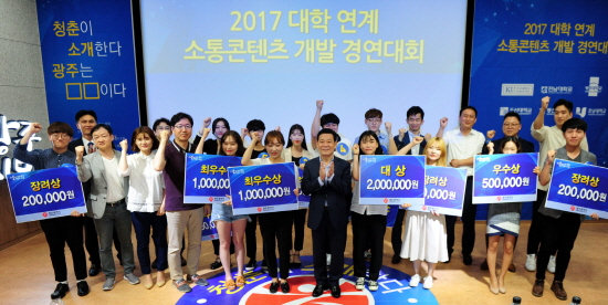¿ì¼ö»óÀº ¡®µå¸²ÇÈÃÄ¡¯ÆÀ(µ¿½Å´ë µðÁöÅÐÄÜÅÙÃ÷Çаú ¼ÁØ¿µ, È«ÀÎÈñ, ±èÃæÈ«, ½Å»ó¹ü) µî 4ÆÀÀÌ, Àå·Á»óÀº ¡®ÇؽÃűױ¤ÁÖ¡¯ÆÀ(È£³²´ë »ê¾÷µðÀÚÀÎÇаú À̰¿µ, ¹ÚÀ¯Áø, ÃÖÄ¡¿î, ±è°¡¿µ, ³ª¼ÒÇö) µî 6ÆÀÀÌ ¼ö»óÇß´Ù. ¼ö»óÆÀ¿¡´Â ±¤ÁÖ½ÃÀå»óÀÌ ¼ö¿©µÇ°í, ´ë»ó¿¡´Â »ó±Ý 200¸¸¿ø, ÃÖ¿ì¼ö»ó 2°³ ÆÀ¿¡´Â »ó±Ý 100¸¸¿ø, ¿ì¼ö»ó 4°³ ÆÀ¿¡´Â 50¸¸¿ø, Àå·Á»ó 6°³ ÆÀ¿¡´Â 20¸¸¿øÀÌ °¢°¢ Àü´ÞµÆ´Ù.