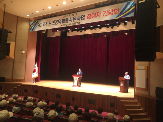 ÇöÀç ¹«¾È±º ³ëÀÎÀÏÀÚ¸® ¹× »çȸȰµ¿ Áö¿ø»ç¾÷Àº 23°³ ºÐ¾ß¿¡¼ 1,001¸íÀÌ È°µ¿ ÁßÀÌ¸ç ¼öÇà±â°üÀÎ ´ëÇѳëÀÎȸ ¹«¾È±ºÁöȸ¿¡¼ 446¸íÀÇ Âü¿©ÀÚ°¡ ³ë³ëÄɾî, °æ·Î´ç°ü¸®, °æ·Î½Ä´ç µµ¿ì¹Ì, °ÔÀÌÆ®º¼ °»ç·Î Ȱµ¿Çϰí ÀÖ´Ù. À̳¯ °£´ãȸ´Â Âü¿© ¾î¸£½Å ´ëÇ¥ 10¸íÀÇ È°µ¿ ¿ì¼ö»ç·Ê º¸°í¸¦ ½ÃÀÛÀ¸·Î ÀÏÀÚ¸® ¸¸Á·µµ Á¶»ç, Âü¿©ÀÚÀÇ ¾Ö·Î ¹× °ÇÀÇ»çÇ× ¼ö·Å µîÀ¸·Î ÁøÇàµÆ´Ù.
