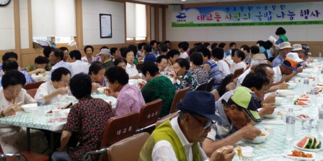 ´ë±³µ¿ »õ¸¶À»ºÎ³àȸ¿øµé°ú µ¿ Áֹμ¾ÅÍ °ø¹«¿ø 10¿©¸íÀº ¹è½Ä ºÀ»çȰµ¿À» ÇÏ¸ç ¾î¸£½ÅµéÀÇ ¾ÈºÎµµ »ìÆñ´Ù. ÀÌÇüÀº ȯ°æ°øÇØÃß¹æ¿îµ¿Áß¾Óȸ È£³²º»ºÎÀåÀº ¡°±¹¹ä ÇÑ ±×¸©ÀÌÁö¸¸ ¾î¸£½ÅµéÀÌ ¹«´õÀ§¸¦ °Ç°ÇÏ°Ô ³ª½Ã´Âµ¥ µµ¿òÀÌ µÇ±æ ¹Ù¶õ´Ù¡±°í ¸»Çß´Ù.