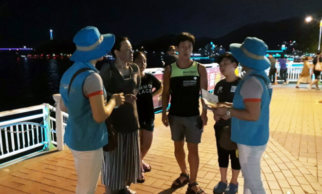 ÇØ¼³»çµéÀº ¿ÀÈÄ 6½ÃºÎÅÍ 10½Ã±îÁö À̼ø½Å±¤Àå¡¤ÇØ¾ç°ø¿ø Àϴ븦 µ¹¸ç °ü±¤°´µé¿¡°Ô ¿©¼ö°ü±¤Áöµµ¸¦ ¹èºÎÇϰí, °ü±¤Áö¡¤À½½Ä¾÷¼Ò¡¤¼÷¹Ú½Ã¼³ µî ¸ÂÃãÇü °ü±¤Á¤º¸¸¦ Á¦°øÇϰí ÀÖ´Ù. ÇöÀç±îÁö ÃÑ 4Àϰ£ Ȱµ¿ÇÏ¸ç °ü±¤¾È³» È«º¸¹° 700¿©°ÇÀ» ¹èºÎÇϰí 80¿©°ÇÀÇ °ü±¤°´ ¹®ÀÇ¿¡ ´ëÀÀÇß´Ù.