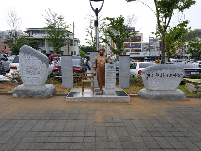 ÇÑÆí, ÀÍ»ê ÆòÈÀÇ ¼Ò³à»óÀº Àü±¹ ÃÖÃÊ·Î ¿ªÀü ±¤Àå¿¡ °Ç¸³µÆÀ¸¸ç, Ÿ Áö¿ª ¼Ò³à»óÀÌ ÀÇÀÚ¿¡ ¾ÉÀº Á½ÄÀÎ °Í°ú ´Þ¸® ÀÍ»ê ÆòÈÀÇ ¼Ò³à»óÀº UNÀαǰáÀǾÈÀ» ¤°í ¼¼ ¾î¸° ¼Ò³àµé¿¡°Ô ÀÚÇàµÈ ÀϺ»ÀÇ ºñÀαÇÀû ÇàÀ§¸¦ ¼¼»ó¿¡ ¾Ë¸®·Á´Â ¸ð½ÀÀ» ´ã¾Æ Ç¥ÇöÇÑ °ÍÀÌ Æ¯Â¡ÀÌ´Ù.