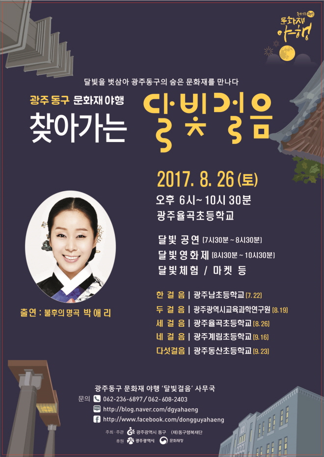 ±¤Áֽà µ¿±¸´Â 26ÀÏ Àú³á 6½ÃºÎÅÍ À²°îÃʵîÇб³¿¡¼ ¡®Ã£¾Æ°¡´Â ´Þºû°ÉÀ½¡¯ ¼¼ °ÉÀ½ Çà»ç¸¦ °³ÃÖÇÑ´Ù°í ¹àÇû´Ù. Áö¿ª ÁÖ¹ÎÀÇ ¹®È ÇâÀ¯±âȸ¸¦ ´Ã¸®°í ´Ù¾çÇÑ ±Ç¿ªÀÇ ¹®ÈÀ縦 Ȱ¿ëÇϱâ À§ÇØ ¸¶·ÃµÈ À̹ø Çà»ç´Â ±¤Áֽà ¹«Çü¹®ÈÀç Á¦12È£ ¾Ç±âÀåÀ» ´ë»óÀ¸·Î ÁøÇàµÈ´Ù.