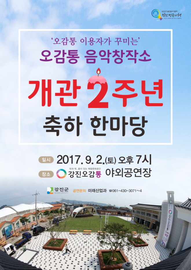 ÇÑÆí, °ÁøÀ¾½ÃÀå ¿·¿¡ À§Ä¡ÇÑ °Áø¿À°¨ÅëÀº Áö³ 2015³â 9¿ù °³°ü ÀÌÈÄ ¸ÅÁÖ Åä¿äÀÏ Àεð¹êµå, Æ÷Å©, Ŭ·¡½Ä µîÀÇ °ø¿¬À» ÆîÃÄ »õ·Î¿î À½¾ÇÈú¸µ¿©Çà ¸í¼Ò·Î ¸í¼ºÀÌ ÀÚÀÚÇÑ °¡¿îµ¥, À̹ø Çà»ç¿Í °ü·ÃÇØ ±Ã±ÝÇÑ Á¡Àº °Áø±ºÃ» ¹Ì·¡»ê¾÷°ú À½¾Çµµ½ÃÆÀ(061-430-3071~4)°ú Àü³²À½¾ÇâÀÛ¼Ò(061-433-3636)·Î ¹®Àǰ¡´ÉÇÏ´Ù.