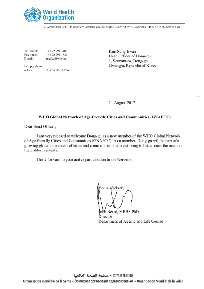 ƯÈ÷ °í·ÉÀڵ鸸ÀÇ Ä£Èµµ½Ã°¡ ¾Æ´Ï¶ó Áö¿ªÀÇ ¸ðµç ¼¼´ë°¡ ÅëÇյǰí ÇÔ²² »ì¾Æ°¡´Â µµ½Ã¸ðµ¨À» ±¸ÃàÇϱâ À§ÇÑ ½ÇÇà°èȹÀ» ¼ö¸³Çϴµ¥ ÁßÁ¡À» µ×°í Áö³ 6¿ù 27ÀÏ WHO¿¡ °¡ÀÔÀ» ½ÅÃ»ÇØ ¸¶Ä§³» °á½ÇÀ» ¸Î¾ú´Ù.